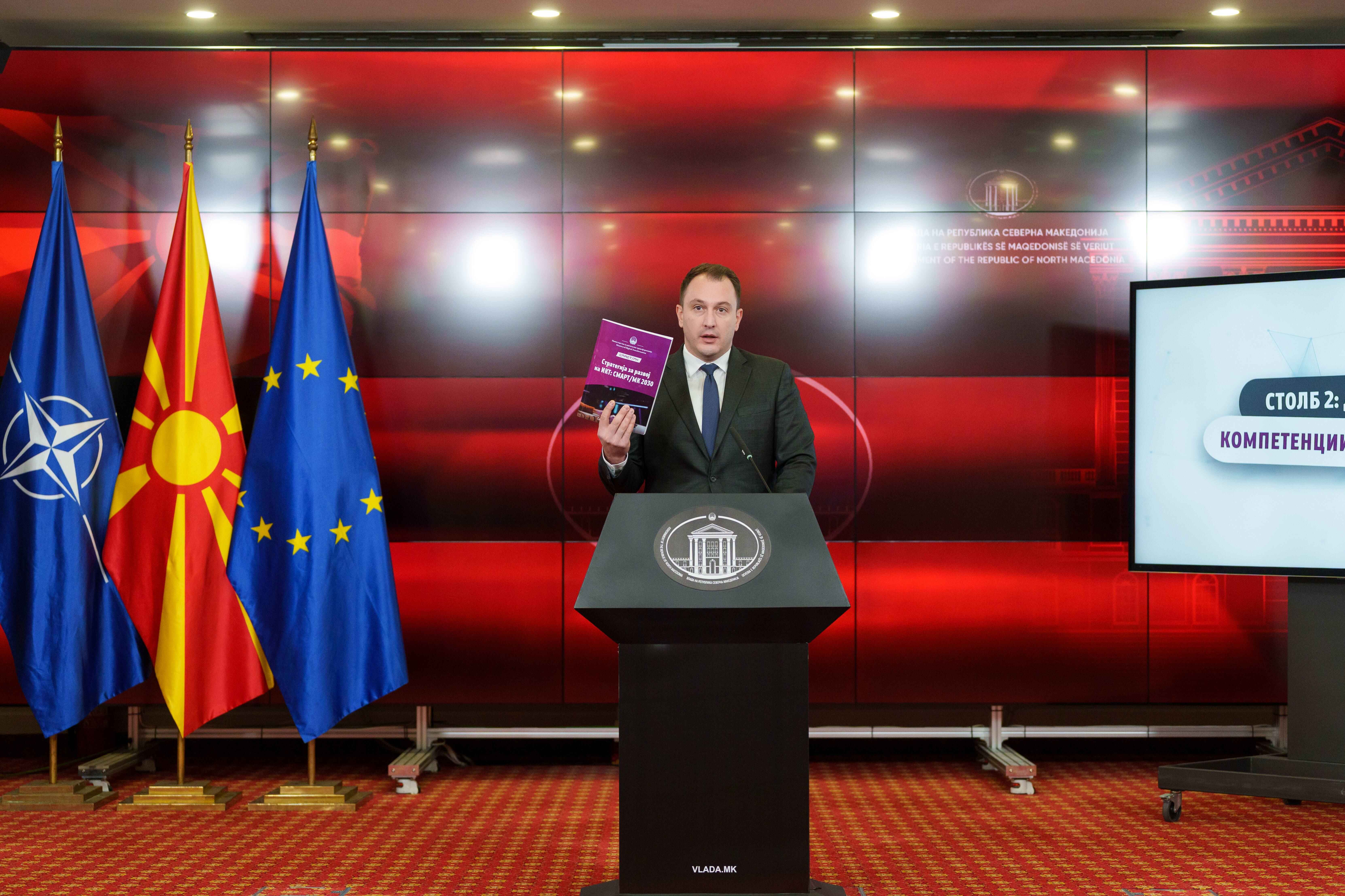 Министерот за дигитална трансформација, Стефан Андоновски, денеска ја претстави новата Национална стратегија за информатичко-комуникациски технологии – „СМАРТ/МК 2030“, со што Македонија, по осум години, конечно добива современ и сеопфатен план за дигитален развој.