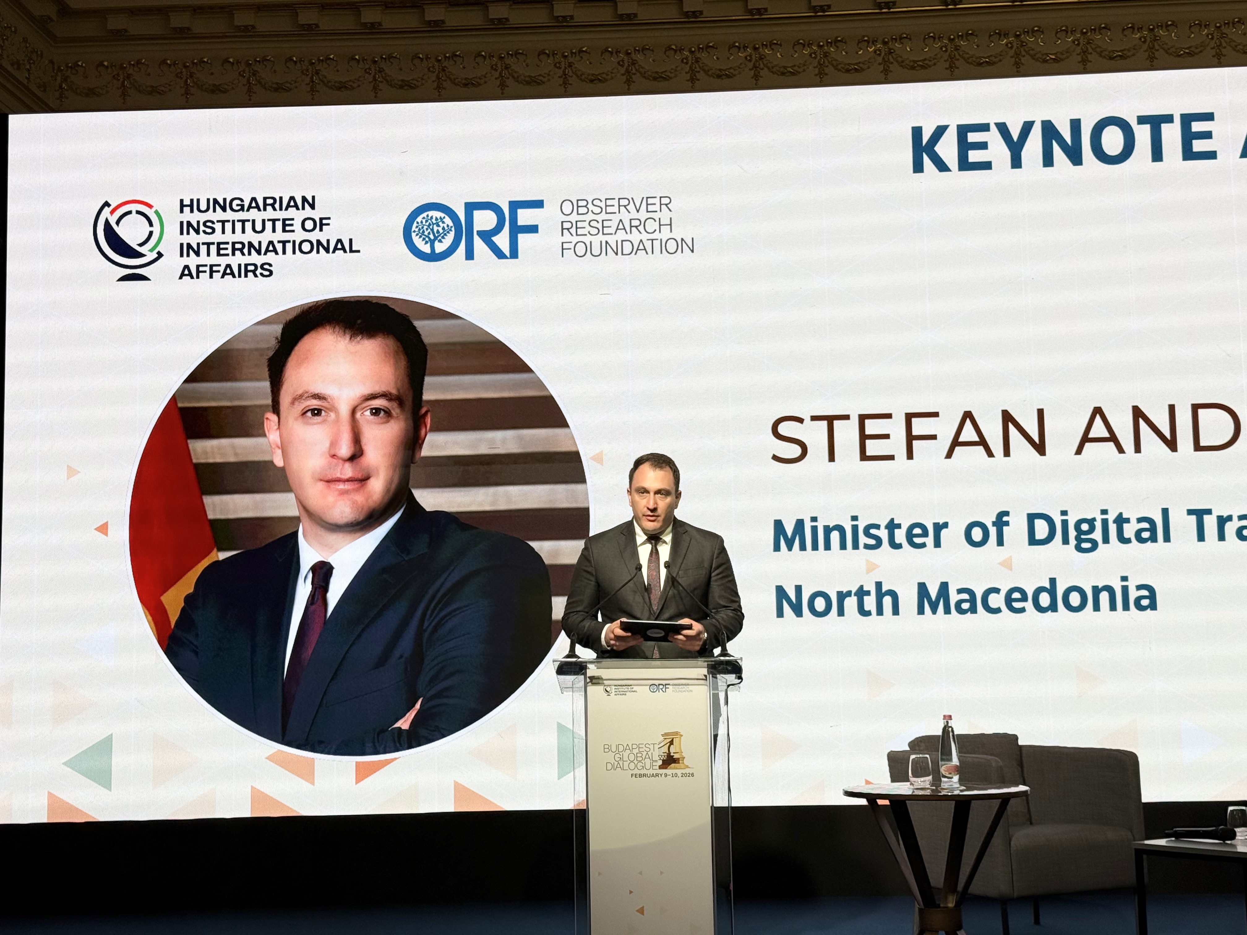 Министерот за дигитална трансформација, Стефан Андоновски, еден од главните говорници на Budapest Global Dialogue 2026, истакна дека стратешката соработка меѓу државите и партнерите е суштинска за градење отпорни институции, стабилни демократии и безбедна дигитална инфраструктура во услови на зголемени глобални предизвици.